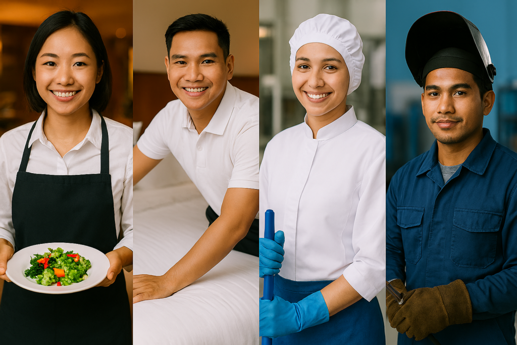 特定技能制度、技能実習制度(育成就労制度)、技術・人文知識・国際業務などの制度を活用し、国内外で学んだ優秀な人材と企業様を結びつけます。